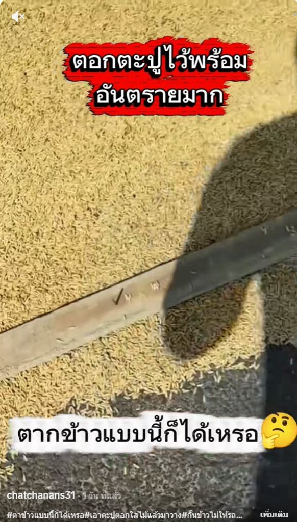 โดยจากในคลิปนั้นได้เผยให้เห็นว่า ดูเค้าตากข้าวทำไมเค้าทำแบบนี้ เค้าเอาไว้วางไว้ และตอกตะปูใส่ด้วย อย่ามาหาเหยียบนะทุกคน อันตรายมาก