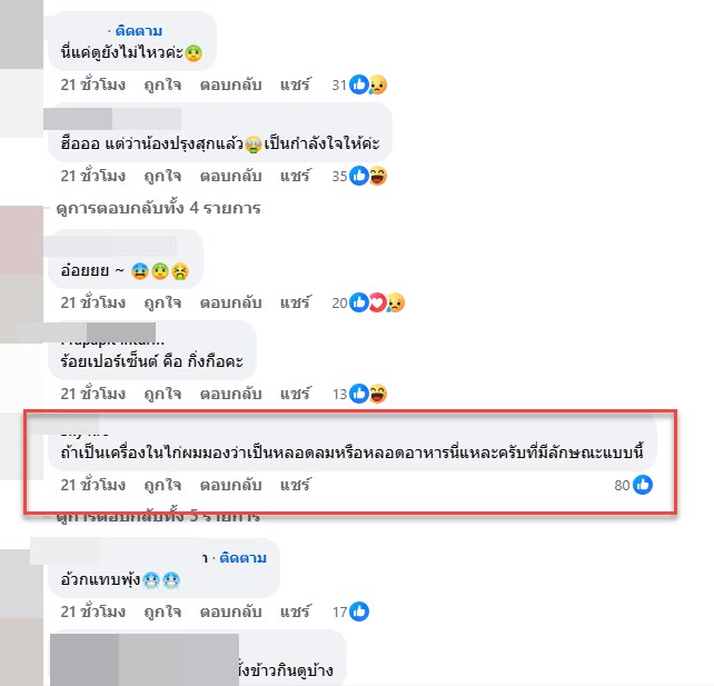 โดยจากในคลิปนี้ก็มีหลายคนเข้ามาแสดงความคิดเห็นกันอย่างมากมาย ทั้งยังบอกว่าอาจจะเป็นหลอดเลือดจากเครื่องในไก่หรือเปล่า