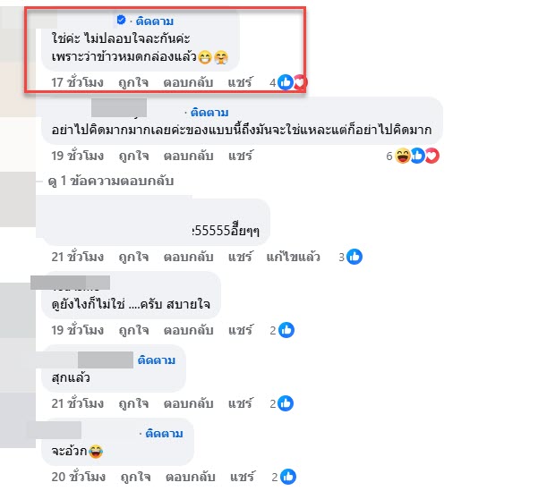 “ใช่ค่ะ ไม่ปลอบใจละกันค่ะ เพราะว่าข้าวหมดกล่องแล้ว”