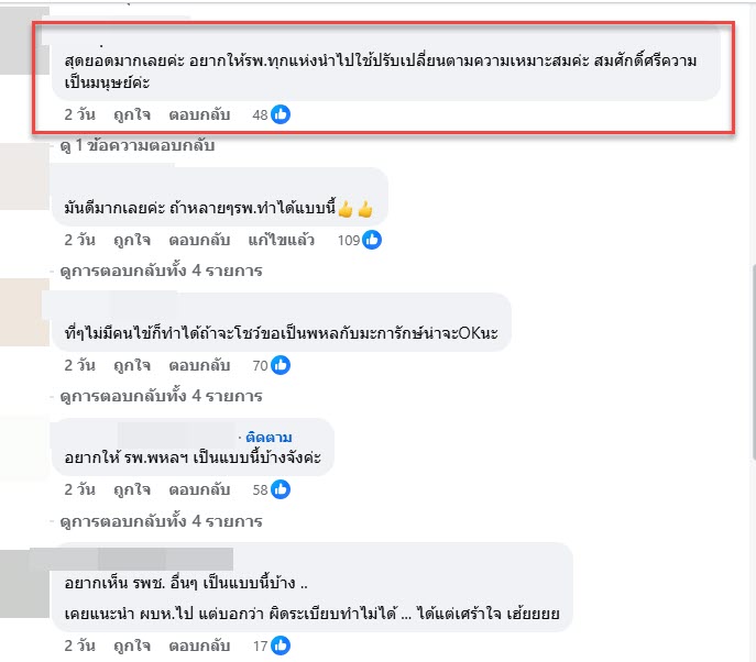 ทั้งนี้ก็ได้มีหลายคนเข้ามาแสดงความคิดเห็นกันอย่างมากมาย ทั้งยังเข้ามาชื่นชมทางโรงพยาบาล และอยากให้โรงพยาบาลนี้เป็นแบบอย่างของโรงพยาบาลอื่นๆด้วย