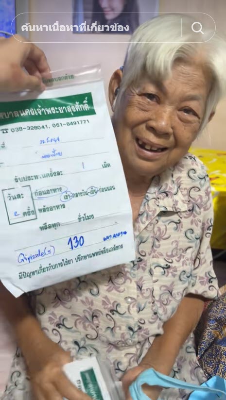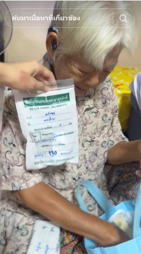 ซึ่งจากในคลิปนั้นได้เผยให้เห็นว่า ซองยาของคุณย่าที่โรงพยาบาล เเทศบาลนครเจ้าพระยาสุรศักดิ์ ที่ทำซองยาแบบใหญ่มากๆ ตัวหนังสือใหญ่ชัดเจน แก้ปัญหาคุณย่ามองไม่เห็น