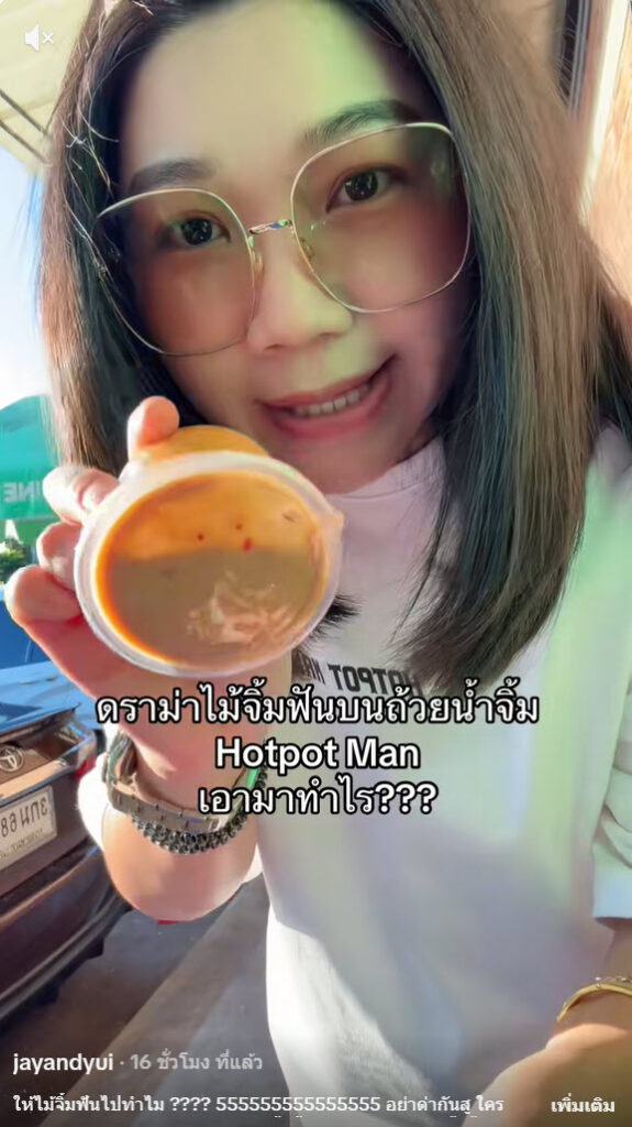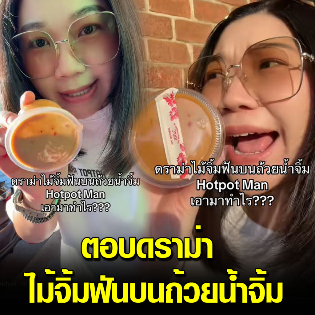 เป็นอีกหนึ่งประเด็นดราม่าที่ลูกค้าเกิดความสงสัย หลังจากที่สั่ง Hotpot Man มาทานแต่เจอถ้วยน้ำจิ้มที่ร้านให้ไม้จิ้มฟันมาเลยทำให้เกิดความสงสัยและเป็นประเด็นให้พูดถึงกันอย่างมาก โดยล่าสุดบัญชีผู้ใช้ TikTok ที่ใช้ชื่อ @jayandyui ซึ่งเป็นเจ้าของร้านได้ออกมาตอบข้อสงสัยเรื่องนี้ว่า