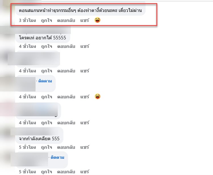 จากโพสต์มีหลายคนเข้ามาแสดงความคิดเห็น”ตอนสแกนหน้าทำธุรกรรมอื่นๆ ต้องทำตางี้ด้วยนะคะ เดี่ยวไม่ผ่าน”