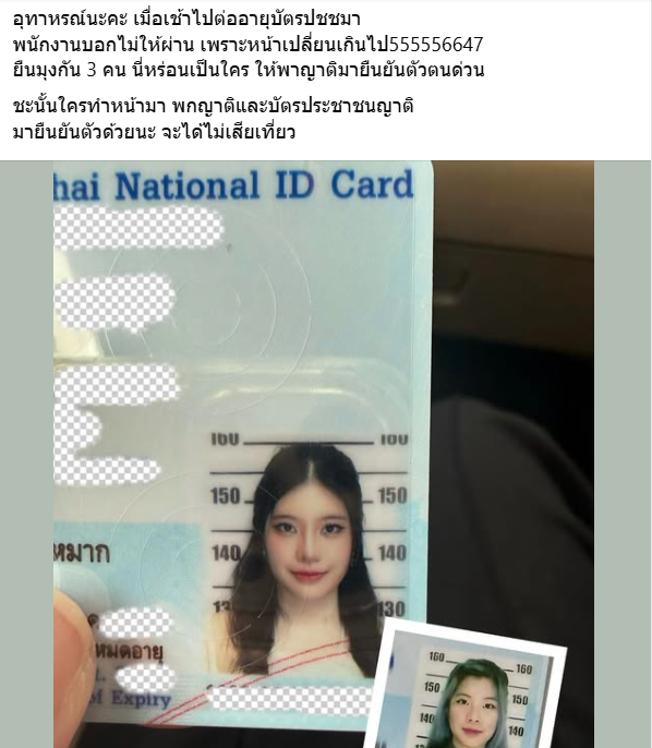 สาวแชร์อุทาหรณ์ เกือบไม่ได้ทำบัตรประชาชนใหม่เพราะหน้าเปลี่ยน วุ่นต้องหาญาติมายืนยัน