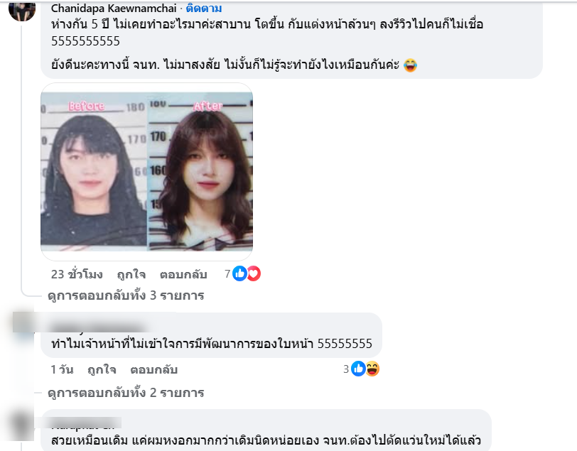 “ห่างกัน 5 ปี ไม่เคยทำอะไรมาค่ะสาบาน โตขึ้น กับแต่งหน้าล้วนๆ ลงรีวิวไปคนก็ไม่เชื่อ 5555555555 ยังดีนะคะทางนี้ จนท. ไม่มาสงสัย ไม่งั้นก็ไม่รู้จะทำยังไงเหมือนกันค่ะ”