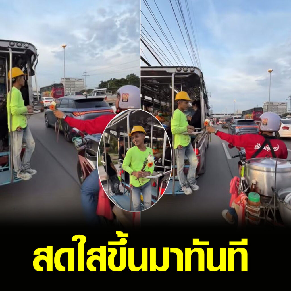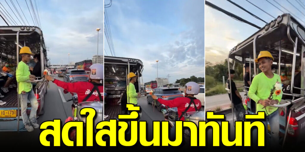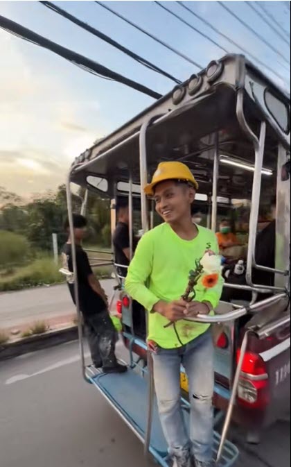 โลกสดใสขึ้นมาทันที เมื่อแจ็กแปปโฮ เอาดอกไม้ให้หนุ่มหลังรถสองแถว