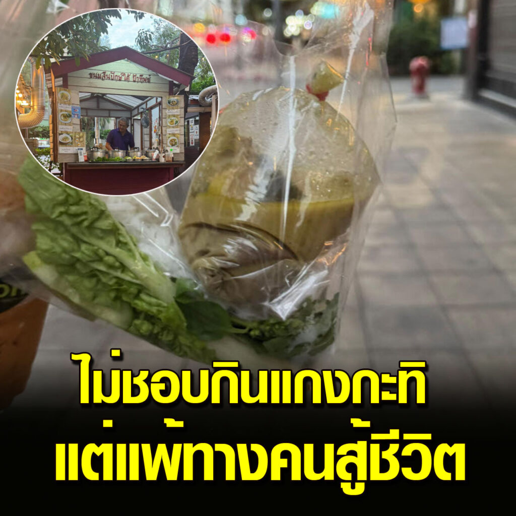 สาวไปนั่งรอซื้อผัดกระเพรา แต่เห็นคุณลุงขายขนมจีนแล้วอดใจซื้อไม่ได้ ทั้งที่ไม่ชอบ
