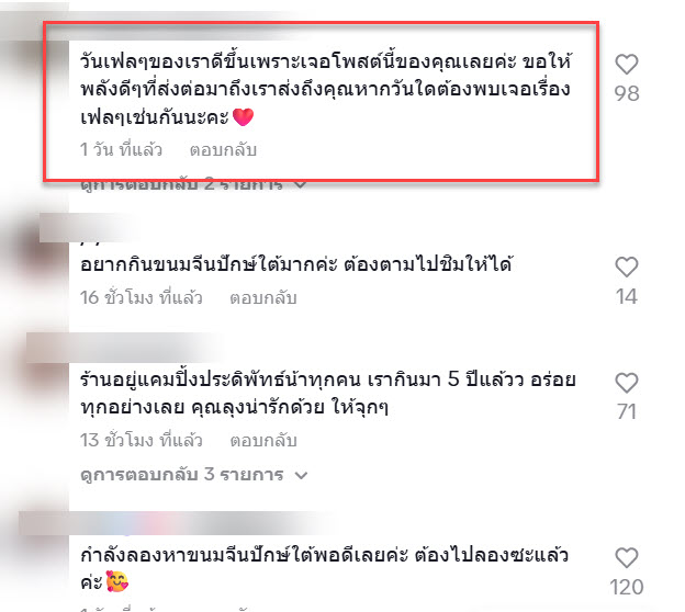 “วันเฟลๆของเราดีขึ้นเพราะเจอโพสต์นี้ของคุณเลยค่ะ ขอให้พลังดีๆที่ส่งต่อมาถึงเราส่งถึงคุณหากวันใดต้องพบเจอเรื่องเฟลๆเช่นกันนะคะ”