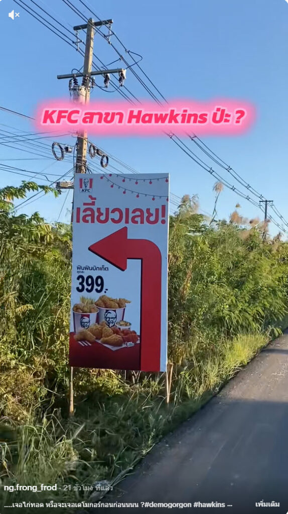 จากในคลิปคือเห็นป้ายร้าน KFC คิดว่าขับตามไปจะได้กินแน่นอน