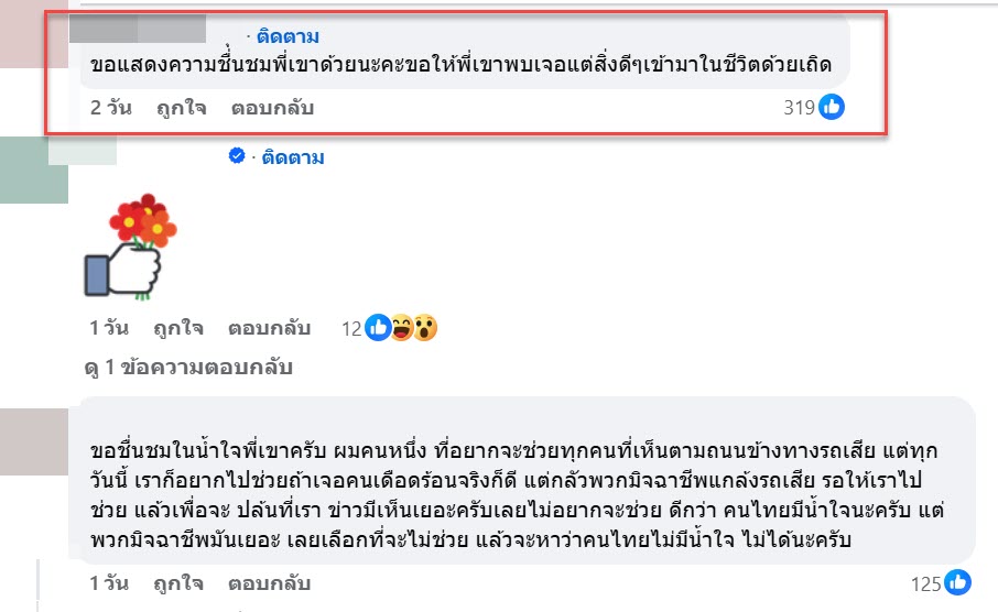 “ขอแสดงความชื่นชมพี่เขาด้วยนะคะขอให้พี่เขาพบเจอแต่สิ่งดีๆเข้ามาในชีวิตด้วยเถิด”