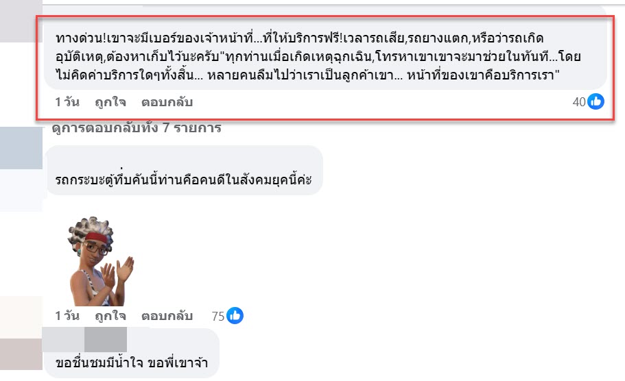 “ทางด่วน!เขาจะมีเบอร์ของเจ้าหน้าที่…ที่ให้บริการฟรี!เวลารถเสีย,รถยางแตก,หรือว่ารถเกิดอุบัติเหตุ,ต้องหาเก็บไว้นะครับ”ทุกท่านเมื่อเกิดเหตุฉุกเฉิน,โทรหาเขาเขาจะมาช่วยในทันที…โดยไม่คิดค่าบริการใดๆทั้งสิ้น… หลายคนลืมไปว่าเราเป็นลูกค้าเขา… หน้าที่ของเขาคือบริการเรา”