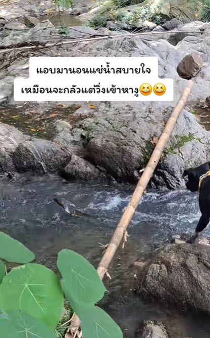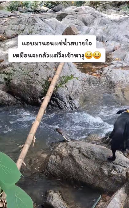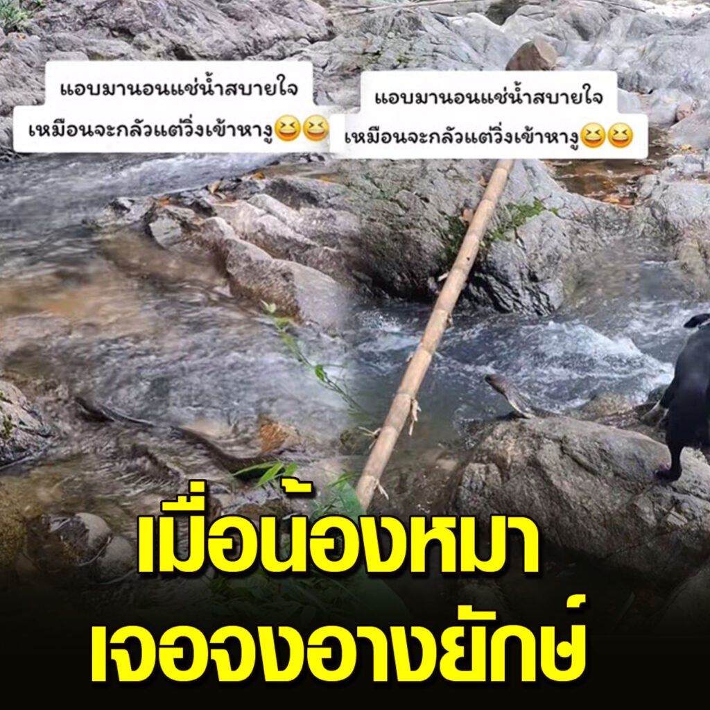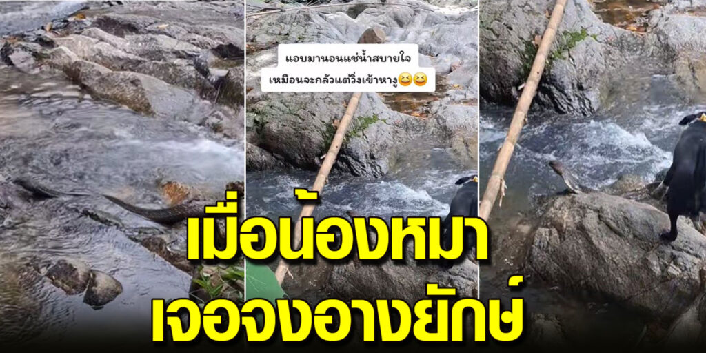 ขนลุก ไปเที่ยวน้ำตกเจองูจงอางยักษ์นอนแช่น้ำ ระทึกน้องหมาวิ่งเข้าใส่