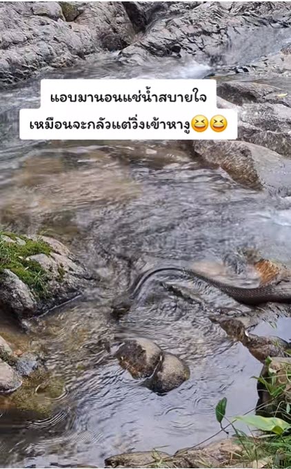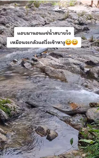 โชคดีมากๆที่น้ำไหลและพัดแรงงูเลยเลื้อยหนีออกไป