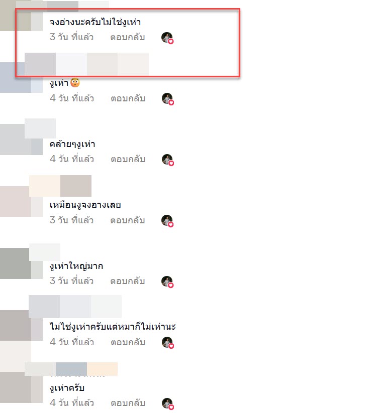 จากคลิปนี้ก็มีหลายคนเข้ามาแสดงความคิดเห็นกันอย่างมากมายทั้งบอกว่า”จงอางนะครับไม่ใช่งูเห่า”