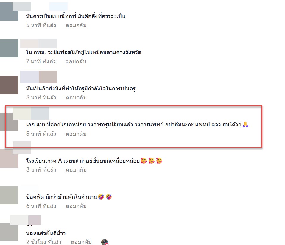 “เออ แบบนี้ค่อยโอเคหน่อย วงการครูเปลี่ยนแล้ว วงการแพทย์ อย่าลืมนะคะ แพทย์ ตจว สนใด้วย”