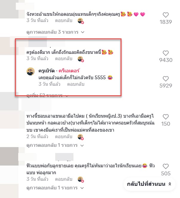 ทั้งนี้มีหลายคนเข้ามาบอกว่าเด็กๆสมัยนี้มีความสนิทสนมกับคุณครูมากๆ ถ้าเป็นเมื่อก่อนเด็กจะหนีครูและไม่กล้าเข้าใจ