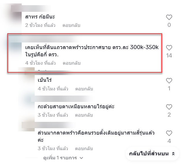 จากคลิปนี้ก็มีหลายคนเข้ามาแสดงความคิดเห็นกันอย่างมากมาย “เคยเห็นที่ดินแถวลาดพร้าวประกาศขาย ตรว.ละ 300k-350k ในรูปคือกี่ ตรว.”
