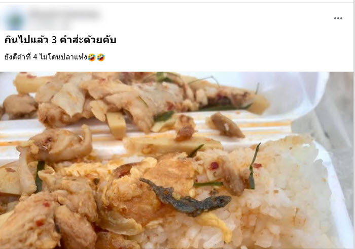 เป็นอีกหนึ่งเรื่องที่อยากให้หลายคนได้ดูเป็นอุทาหรณ์สำหรับคนที่ชอบซื้ออาหารตามร้านมาทาน เพราะอาจจะไม่สะอาดหรือถูกสุขลักษณะ โดยล่าสุดบัญชีผู้ใช้เฟซบุ๊กรายหนึ่งได้ออกมาโพสต์ภาพพร้อมเผยว่า “กินไปแล้ว 3 คำส่ะด้วยคับ ยังดีคำที่ 4 ไม่โดนปลาแห้ง”