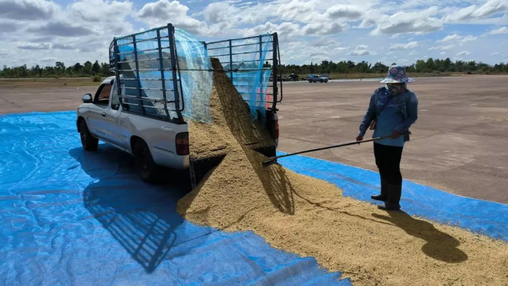 แห่งเดียวในประเทศ ที่ใช้รันเวย์สนามบินตากข้าวเปลือก
