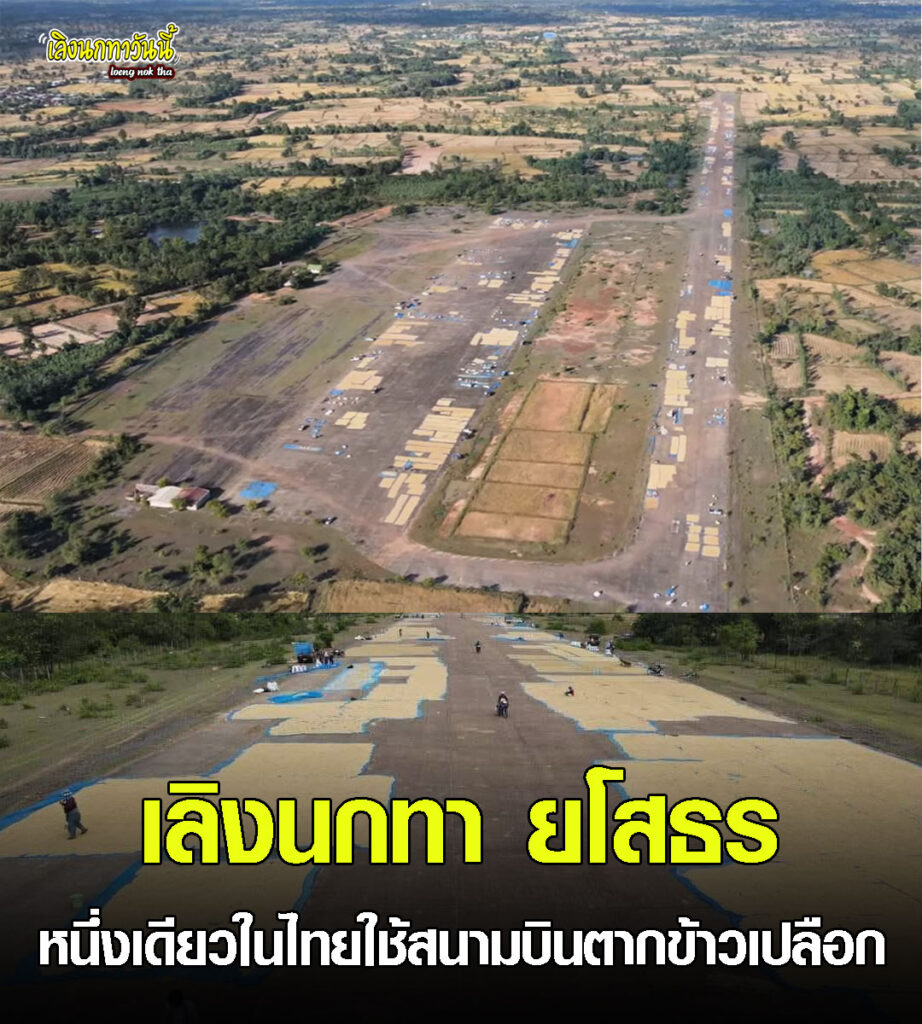 ชาวนาในพื้นที่ อ.เลิงนกทา จ.ยโสธร จึงขออนุญาตหน่วยทหารที่ดูแลพื้นที่เพื่อใช้สนามบินกองทัพบก อ.เลิงนกทา จ.ยโสธร เป็นลานตากข้าว