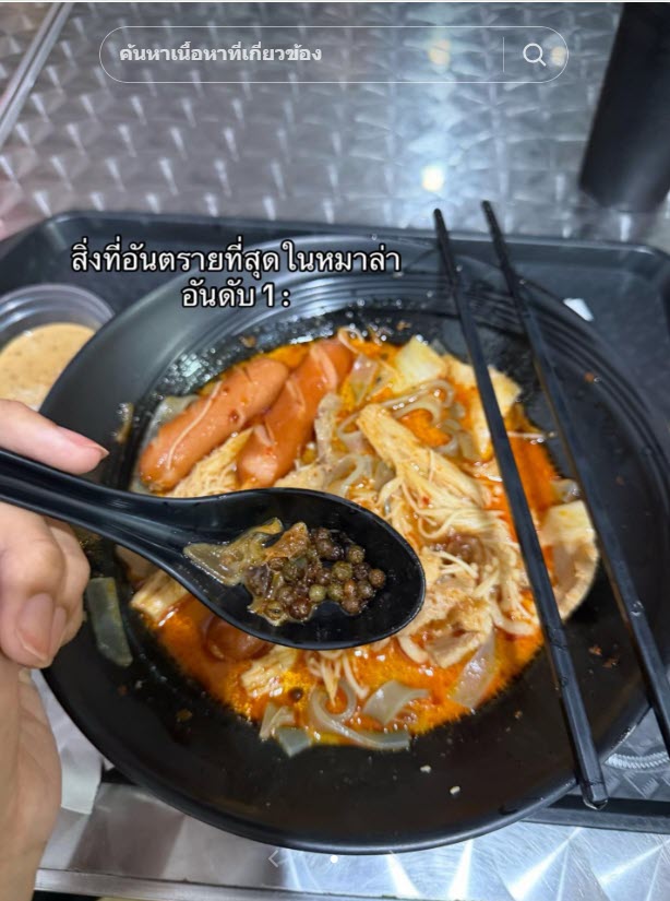 สำหรับคนที่ชอบทานหมาล่า ถือเป็นอีกหนึ่งเมนูฮิต ที่หลายคนชื่นชอบ เพราะความเผ็ดลิ้นชา แบบที่กินแล้วหยุดไม่ได้ โดยล่าสุดบัญชีผู้ใช้ TikTok ที่ใช้ชื่อ @febseislg ได้ออกมาโพสต์คลิปพร้อมเผยว่า “สิ่งที่อันตรายที่สุดในหมาล่า อันดับ 1 “
