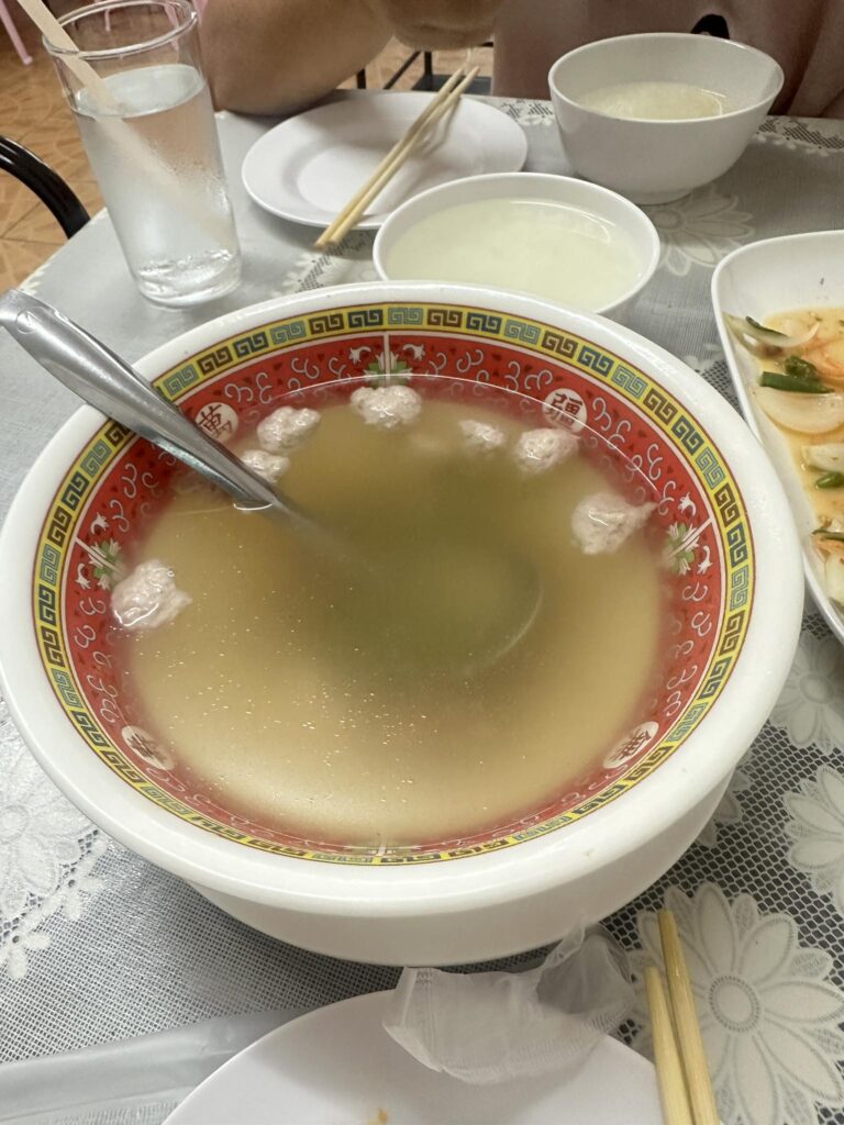 “ไม่รู้ร้านเดียวกันไหม ครั้งแรกและครั้งเดียว อาหารแพงมากไม่เหมือนในรีวิว ติดใจอยู่ 1 เมนูคือต้มจับฉ่ายปกติมันคือผักหลายๆอย่างมารวมกันแต่ที่ได้มาคือน้ำๆแบบี้เลยค่ะมีหน่อไม้จีน 2 จุก หมูก้อนๆแบบนี้ 4-5 ก้อน ถามเด็กแล้วเขาบอกเป็นจับฉ่ายสไตล์ฮ่องกงหรือแต๊จื๋วนี่แหละ555”