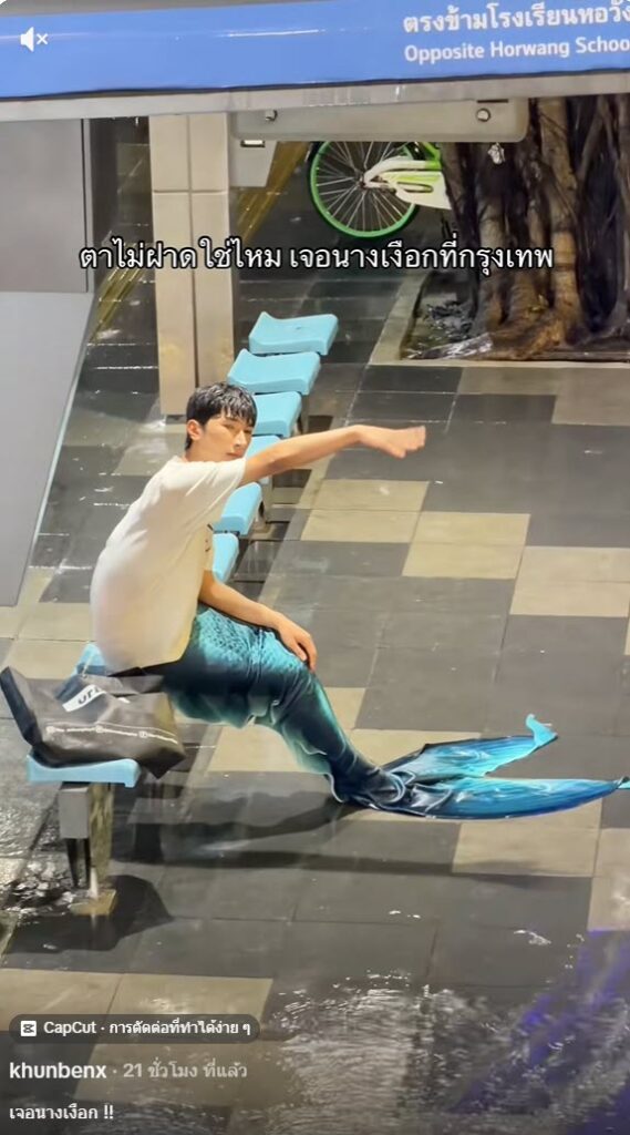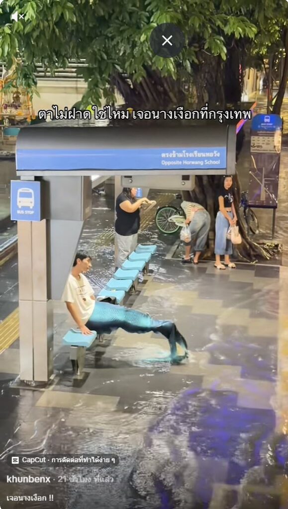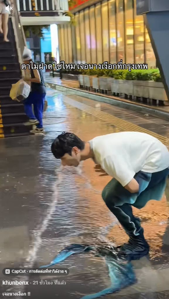 ในช่วงที่ประเทศไทยมีฝนตกหนัก ทำให้หลายพื้นที่มีน้ำท่วมขังและเกิดผลกระทบในการใช้ชีวิตอย่างมาก แต่ล่าสุดเรามีอีกหนึ่งคลิปที่ดูแล้วน่ารักและคลายเครียดในช่วงฝนตกหนัก เมื่อบัญชีผู้ใช้ TikTok ที่ใช้ชื่อ @khunbenx ได้ออกมาโพสต์คลิปพร้อมเผยว่า “ตาไม่ฝาดใช่ไหม เจอนางเงือกที่กรุงเทพ” โดยจากในคลิปนั้นได้เผยให้เห็นว่า