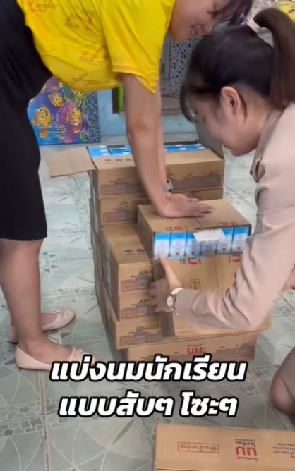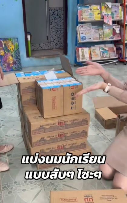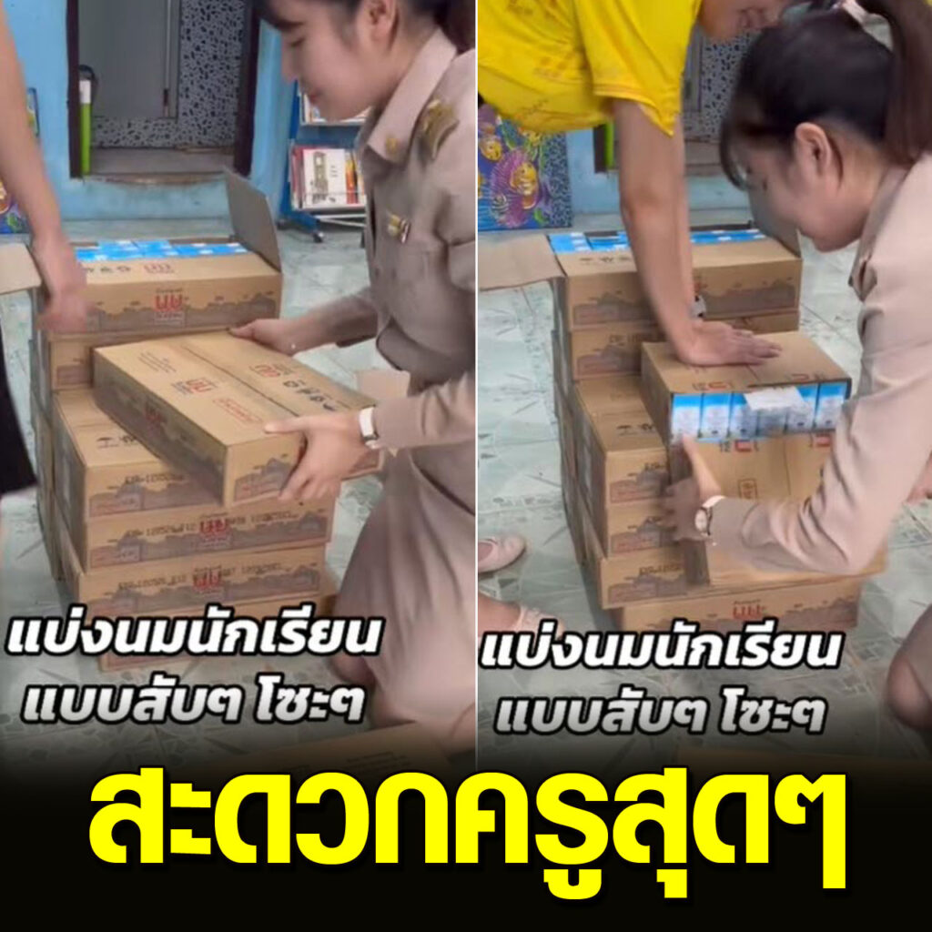 ในช่วงนี้เด็กๆอยู่ในช่วงใกล้จะปิดเทอม ทำให้คุณครูต้องแจกจ่ายนมโรงเรียนเพื่อให้เด็กๆเอาไว้ดื่มในช่วงปิดเทอม โดยล่าสุดบัญชีผู้ใช้ เฟซบุ๊กที่ใช้ชื่อ Thapanee Chanthanate ได้ออกมาโพสต์คลิปสอนวิธีแบ่งนมให้เด็กๆ