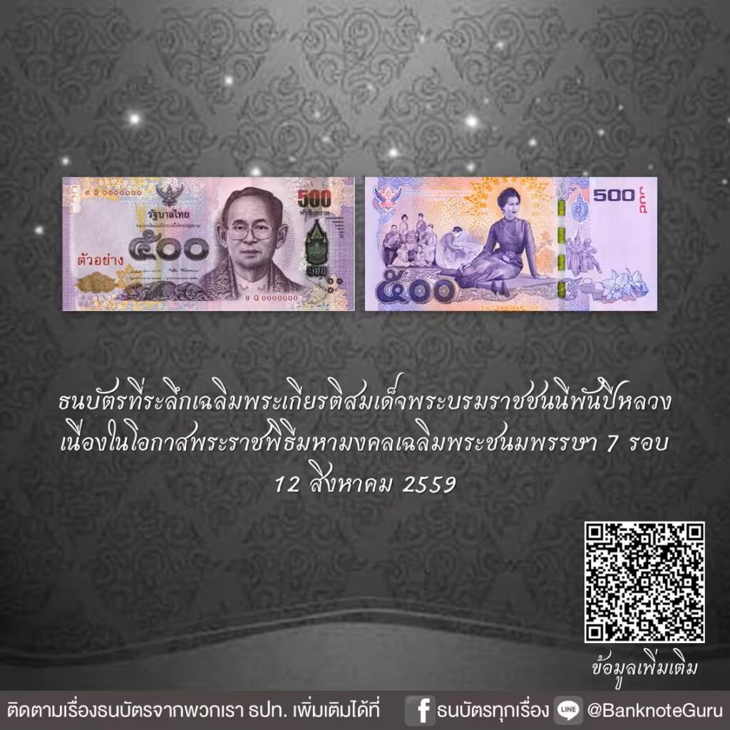 ธนาคารแห่งประเทศไทย รวมภาพ “ธนบัตรที่ระลึกเฉลิมพระเกียรติ สมเด็จพระบรมราชชนนีพันปีหลวง” ทั้งหมด 7 แบบ