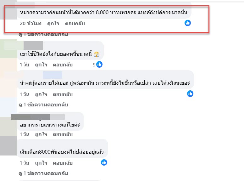 จากในโพสต์นี้ก็มีหลายคนเข้ามาแสดงความคิดเห็น ทั้งบอกว่าเรื่องนี้ถือเป็นปัญหาใหญ่มากจริงๆ ไม่รู้เลยว่าจะแก้หนี้ก้อนใหญ่นี้ได้ยังไง