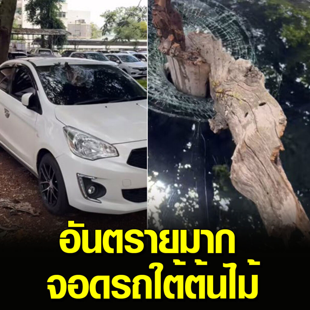 โดยจากในคลิปนั้นได้เผยให้เห็นว่ารถที่จอดไว้ใต้ต้นไม้ กลับมาเจอว่ามีกิ่งไม้ขนาดใหญ่ หล่นลงมาโดนกระจกรถจนแตกทะลุลงไป ซึ่งอันตรายมากๆ