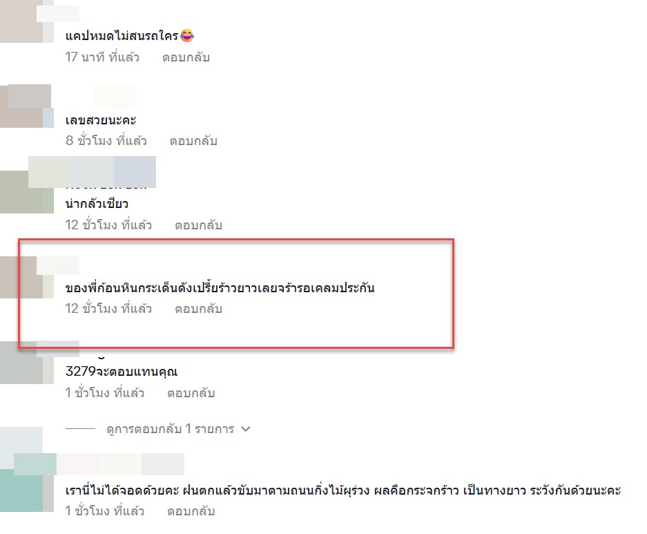 “ของพี่ก้อนหินกระเด็นดังเปรี้ยร้าวยาวเลยจร้ารอเคลมประกัน”