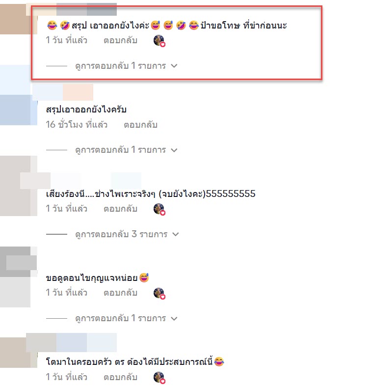 หลายคนเห็นคลิปนี้ต่างก็เข้ามาแสดงความคิดเห็นกันอย่างมากมาย “สรุป เอาออกยังไงค่ะป้าขอโทษ ที่ขำก่อนนะ”