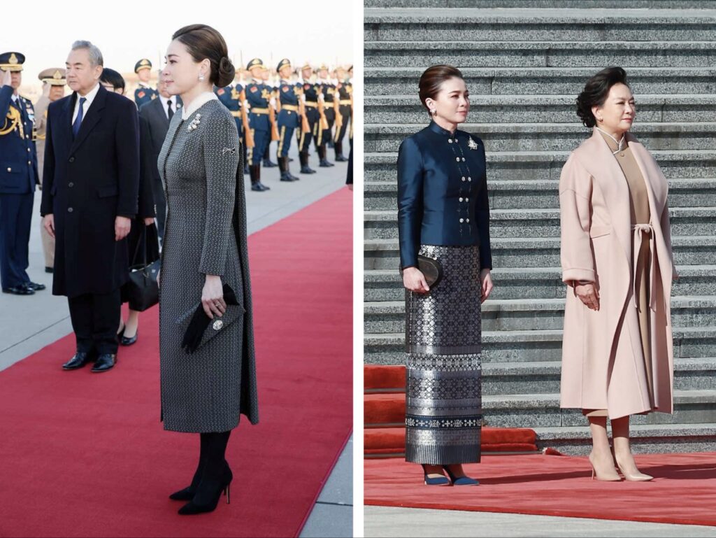 ทั้งนี้ 8 ฉลองพระองค์ในการเสด็จเมืองจีนเป็นครั้งแรกของสมเด็จพระราชินีฯ ในฐานะที่ทรงเป็นอาคันตุกะ ซึ่งทุกชุดตัดเย็บจากผ้าไหมไทยออกแบบและตัดเย็บโดยฝีมือคนไทย