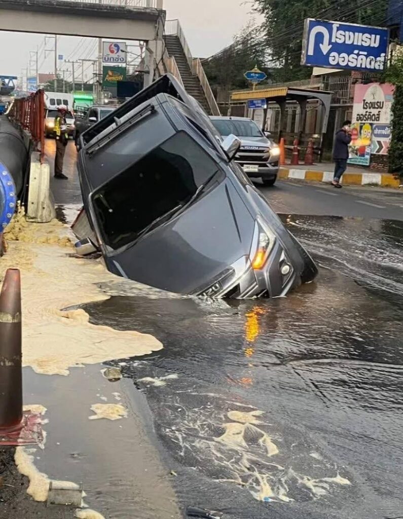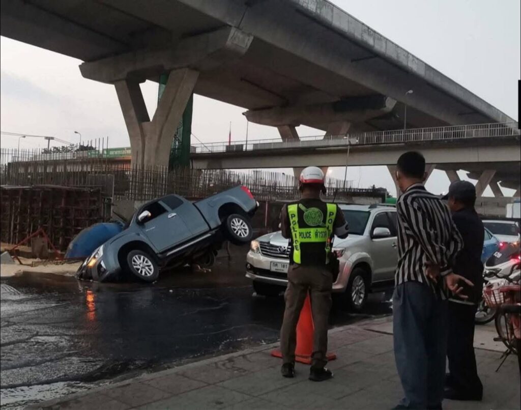 มีรถกระบะตกลงไปในหลุม 1 คัน