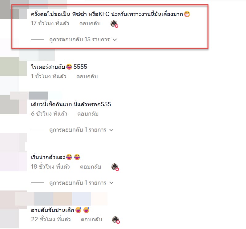 “ครั้งต่อไปขอเป็น พิซซ่า หรือKFC น้ะครับเพราะงานนี้มันเสี่ยงมาก”