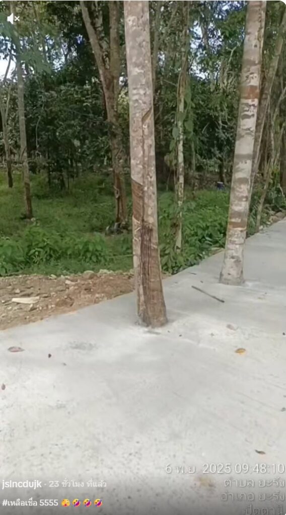 เป็นอีกหนึ่งคลิปที่ถูกพูดถึงอย่างมากมาย เมื่อบัญชีผู้ใช้ TikTok ที่ใช้ชื่อ @jslncdujk ได้ออกมาโพสต์คลิปของต้นยาง 2 ต้น ที่อยู่บนถนนคอนกรีต โดยจากในคลิปนี้ได้เผยให้เห็นว่าทาง อบต.ที่มาทำถนน ซึ่งตอนเทปูนลงไปทางเจ้าหน้าที่ก็ไม่ได้ตัดต้นไม้ออกไป