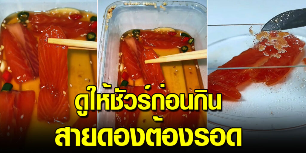 ซูมชัดทุกอณู ส่องกล้องแซลมอนดอง ที่ซื้อจากตลาด ดูแล้วโล่งใจ