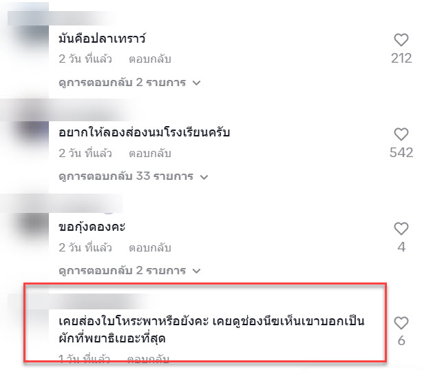 “เคยส่องใบโหระพาหรือยังคะ เคยดูช่องนึฃเห็นเขาบอกเป็นผักที่พยาธิเยอะที่สุด”