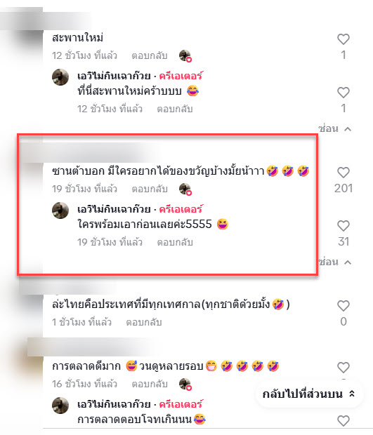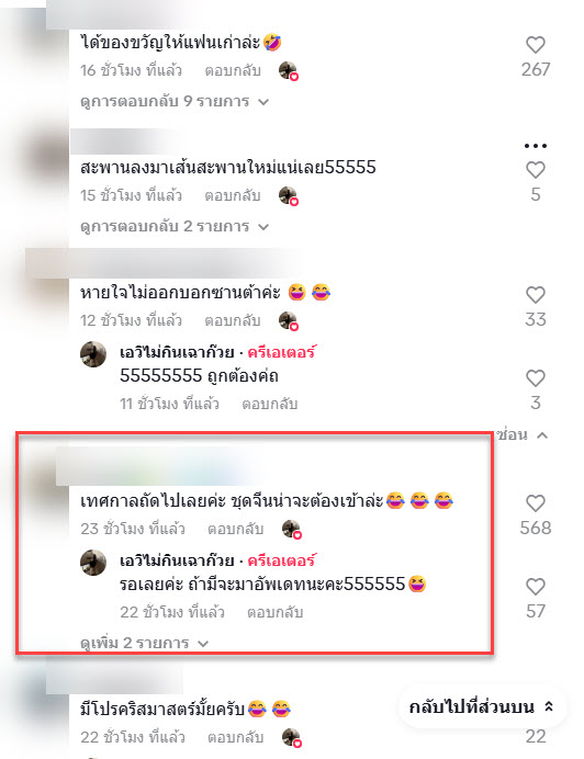ทั้งนี้มีหลายคนเข้าแซวกันอย่างมากมาย ทั้งบอกว่า หายใจไม่ออกบอกซานต้า หรือบางคนก็ถามว่ามีโปรวันคริสต์มาสไหม