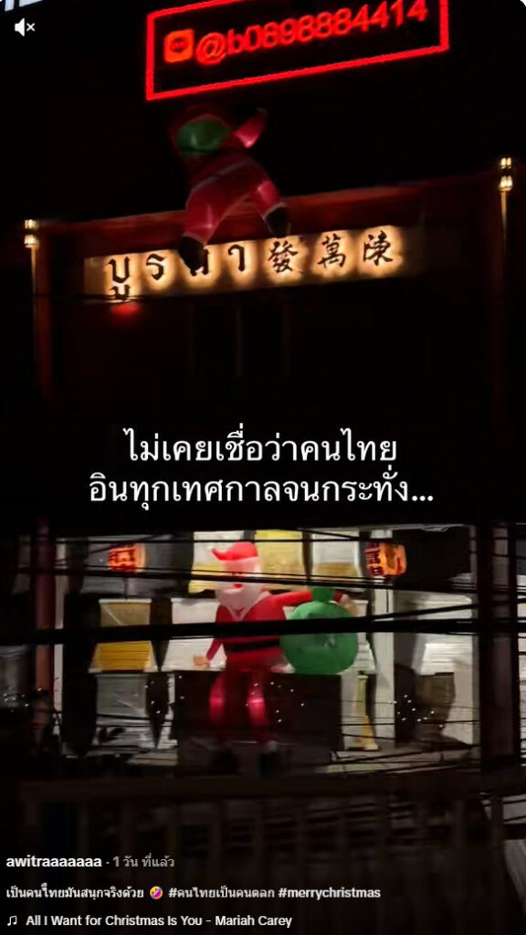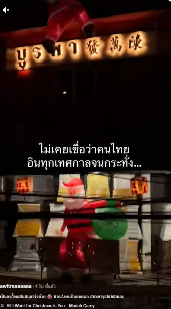 ไม่เคยเชื่อว่าคนไทยอินทุกเทศกาลจนกระทั่ง…ไปเจอร้านขายหีบศX ที่ตกแต่งร้านในช่วงเทศกาลคริสต์มาส มีซานต้าและมีไฟตกแต่งสวยงาม