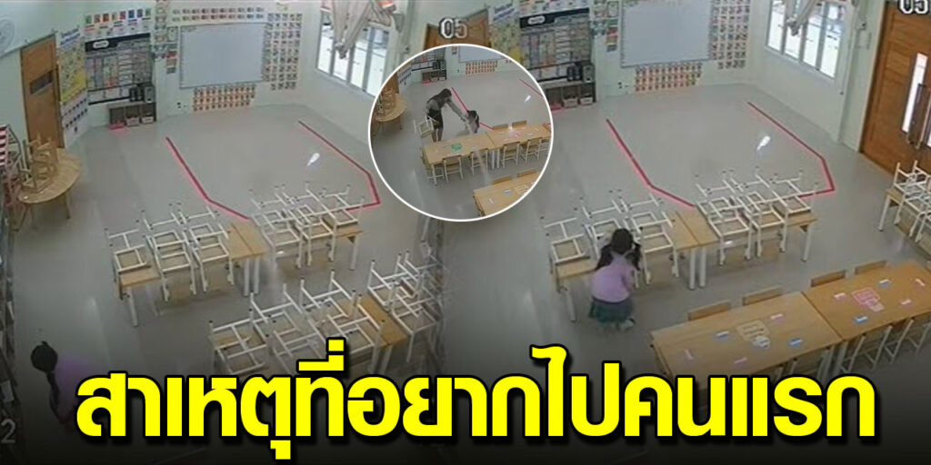 โดยจากในคลิปนั้นได้เผยให้เห็นว่าน้องที่คุณแม่ไปส่งที่โรงเรียนแต่เช้า พอไปถึงน้องก็เก็บกระเป๋าของตัวเอง และมายกเก้าอี้ลงจากโต๊ะ ให้เพื่อนๆทั้งห้องเลย