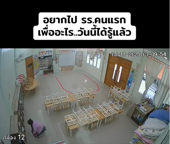 คุณแม่สงสัยทำไมลูกอยากไปโรงเรียนคนแรก เห็นคลิปจากกล้องวงจรปิด ชื่นใจสุดๆ
