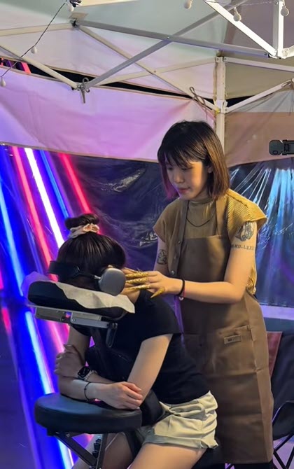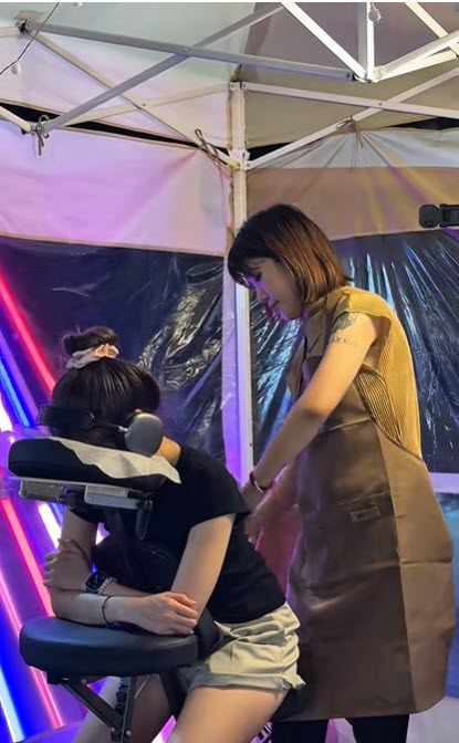 โดยจากในคลิปนี้ได้เผยให้เห็นว่ามีร้านที่รับเกาหลัง โดยให้ลูกค้านอนและสวมใส่หูฟัง และมีคนมาเกาหลังให้ เหมือนเป็นอีกหนึ่งวิธีผ่อนคลายที่ดีจริงๆ