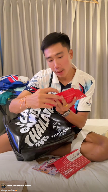โดยล่าสุดบัญชีผู้ใช้ เฟซบุ๊กที่ใช้ชื่อ Adong Phoumisin ซึ่งเป็นนักกีฬาทีมชาติลาว ได้รีวิวถุงของขวัญจากซีเกมส์ของไทย โดยจากในคลิปนั้นได้พาไปเปิดถุง ก็จะมีกระเป๋าสีดำใบใหญ่ใบหนึ่ง