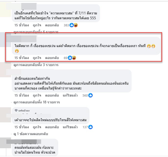 “ไม่คิดมาก ก็ เรื่องของเซเว่น แต่ถ้าคิดมาก เรื่องของเซเว่น ก็จะกลายเป็นเรื่องของเรา ทันที”