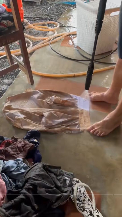 จากในคลิปนี้ก็ถือว่าเป็นอีกหนึ่งแนวทางในการทำความสะอาดเสื้อผ้าจากน้ำท่วม เพราะการใช้เครื่องฉีดน้ำแรงดันสูงๆก็สามารถทำให้เสื้อผ้าสะอาดมากขึ้นได้