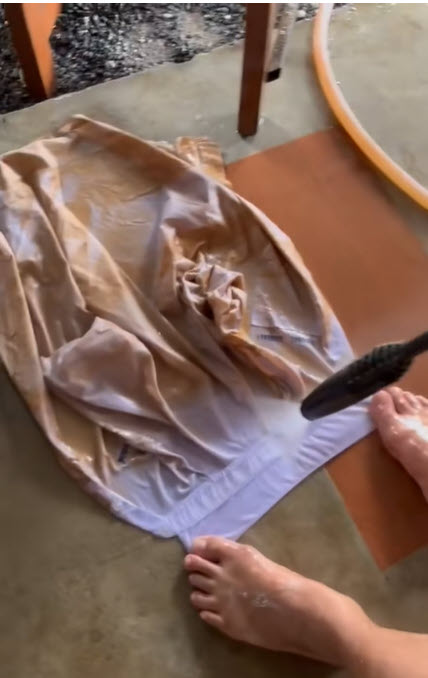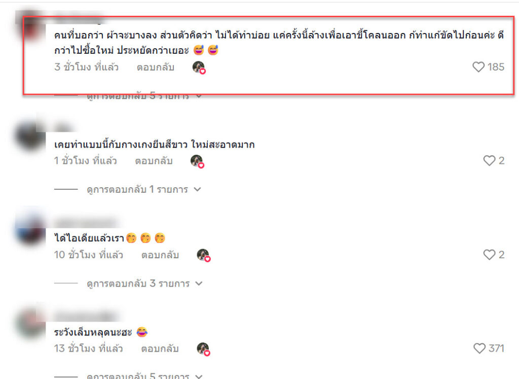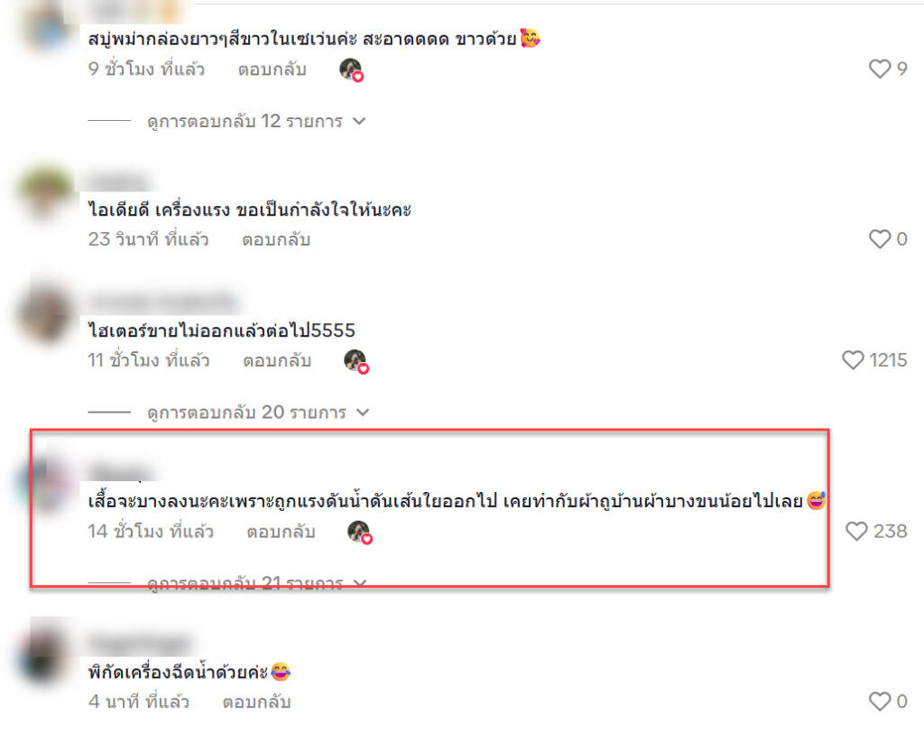 “เสื้อจะบางลงนะคะเพราะถูกแรงดันน้ำดันเส้นใยออกไป เคยทำกับผ้าถูบ้านผ้าบางขนน้อยไปเลย”