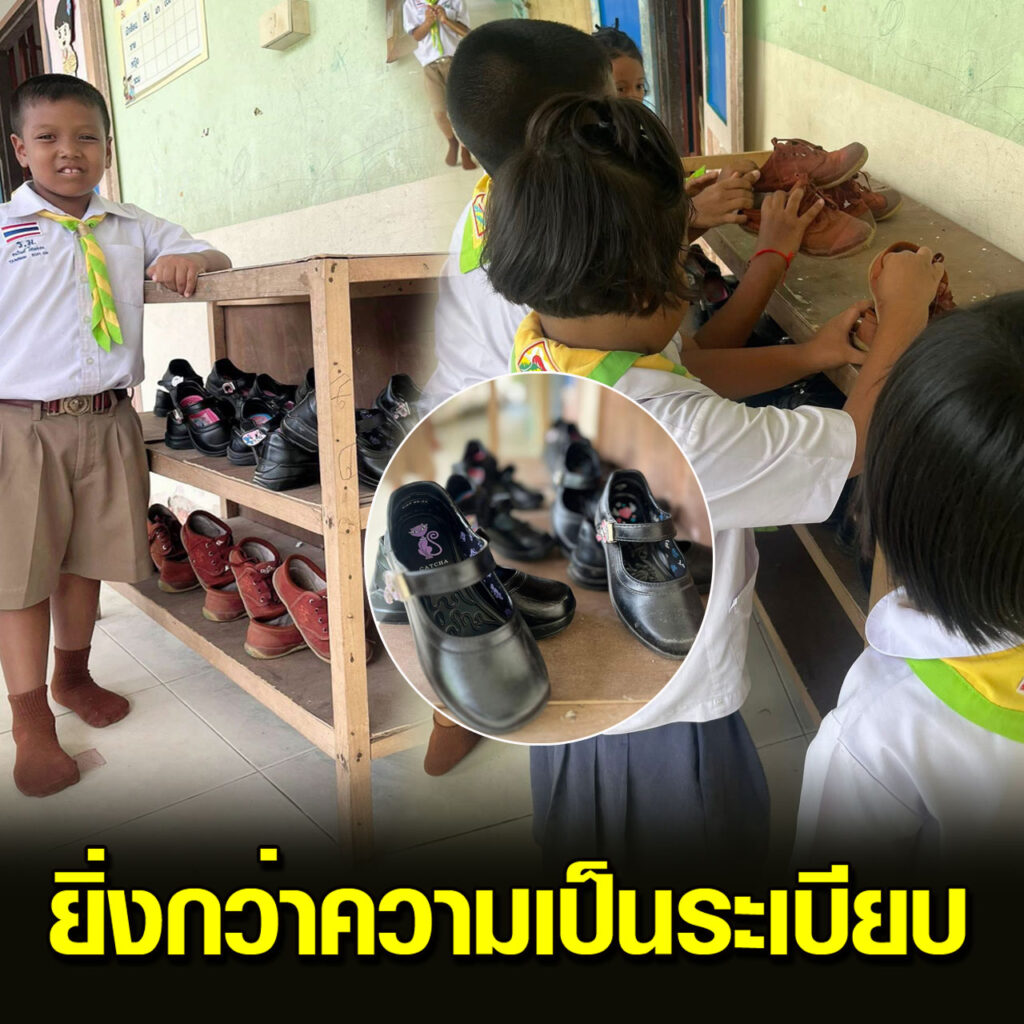 เป็นอีกหนึ่งเรื่องราวที่เห็นแล้วอยากแชร์สุดๆ เมื่อคุณครูได้ออกมาโพสต์ภาพชื่นชมเด็กๆ ชั้น ป.1 ที่พากันจัดเรียงรองเท้าให้เป็นระเบียบเรียบร้อย แต่ทำครูต้องหยุดดูเนื่องจากนึกว่าอยู่ในแผนกรองเท้า โดยจากโพสต์นั้นได้ระบุว่า