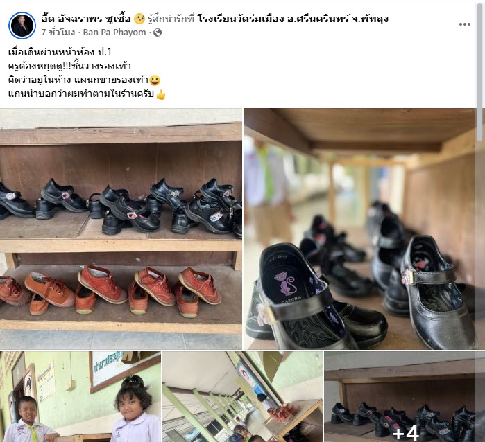 “เมื่อเดินผ่านหน้าห้อง ป.1 ครูต้องหยุดดู!!!ชั้นวางรองเท้า คิดว่าอยู่ในห้าง แผนกขายรองเท้า แกนนำบอกว่าผมทำตามในร้านครับ“